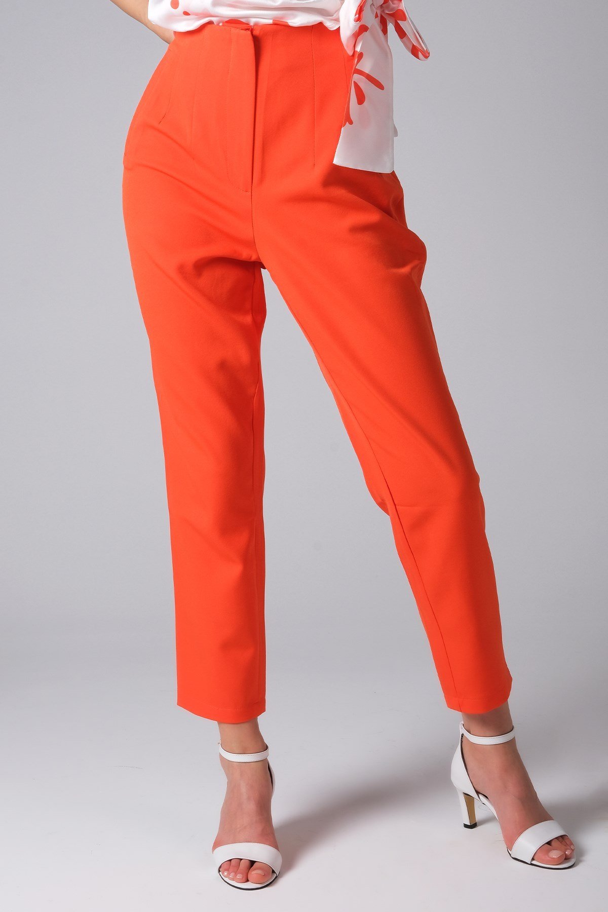 Elastik belli straight fit keten karışımlı pantolon